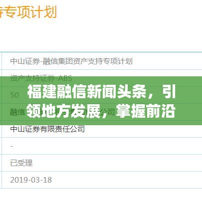 近年来,福建省在经济发展、社会进步等方面取得了显著成就,吸引了众多关注,作为地方发展的重要推动力量,福建融信新闻头条及时传递着最新的资讯和动态,为公众呈现出一个全方位、多角度的福建。