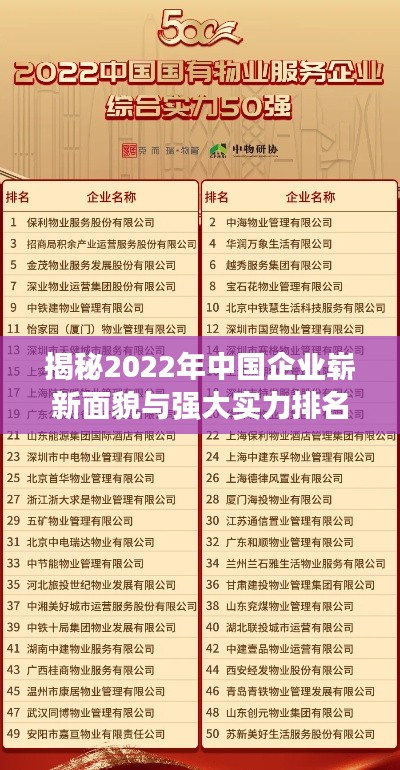 随着全球经济的不断演变和中国市场的蓬勃发展,国内公司在过去的一年中展现出了强大的竞争力和创新活力,本文将根据最新数据,为您揭晓国内公司排名2022,展现中国企业的崭新面貌与强大实力。