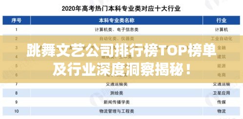 在当今社会,跳舞文艺公司如雨后春笋般崭露头角,以其独特的艺术魅力和创新形式赢得了广大观众的喜爱,本文将探讨跳舞文艺公司的排名及其背后的原因,同时深入分析行业的现状和未来趋势。